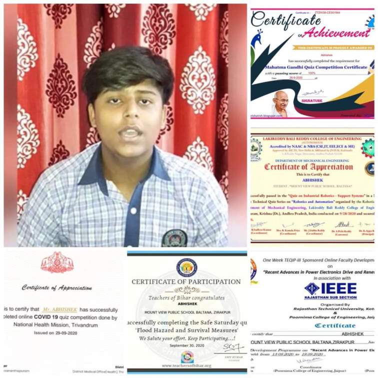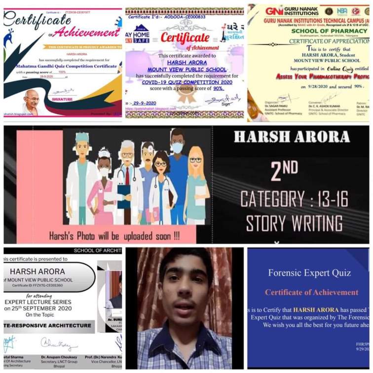Proud moment for bringing laurels to the institute (MountView )as our two very diligent students Harsh Arora and Abhishek of class 10th ,participated in different online activities and fetch the prizes as well as appreciations. We bless you to keep going on right direction always.